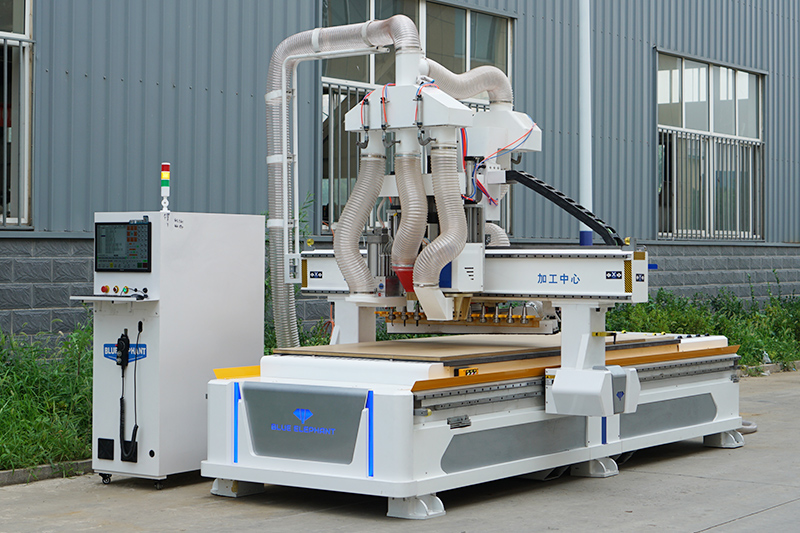 無(wú)孔工藝帶排鉆包開(kāi)料機(jī)是藍(lán)象數(shù)控研發(fā)的高性能數(shù)控開(kāi)料機(jī),用于板式家具開(kāi)料、打孔、開(kāi)槽等工藝的經(jīng)濟(jì)型開(kāi)料加工中心。該機(jī)型不僅能夠完成普通的三合一開(kāi)料打孔,同時(shí)也能開(kāi)月牙形孔,滿足現(xiàn)代化的板式家具無(wú)孔工藝加工要求,應(yīng)用更廣。它的使用不僅提高了板式家具的生產(chǎn)加工精度和效率,也節(jié)省了生產(chǎn)成本。