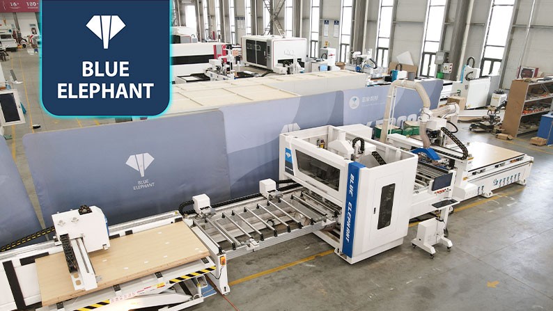 3. 鉆切一體代替?zhèn)鹘y(tǒng)的開料機(jī)-六面鉆的技術(shù)路線,解決了因多次定位、多次搬運(yùn)導(dǎo)致的生產(chǎn)效率低、精度低等問題,實(shí)現(xiàn)一次定位即可完成打孔、開料等工序,提高生產(chǎn)效率及成品精度,促進(jìn)了板式家具定制工廠產(chǎn)品產(chǎn)能、提升質(zhì)量。